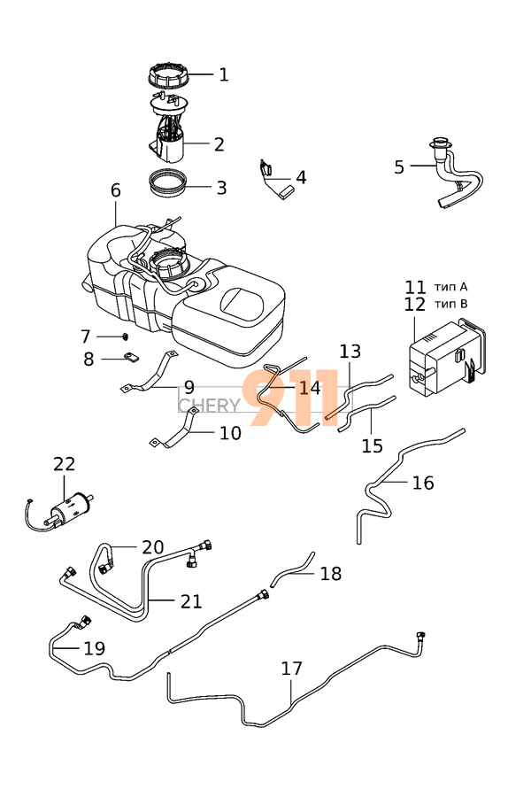 | 6 | S11-1101110BA | Бак топливный S11-1101110BA | 1 |