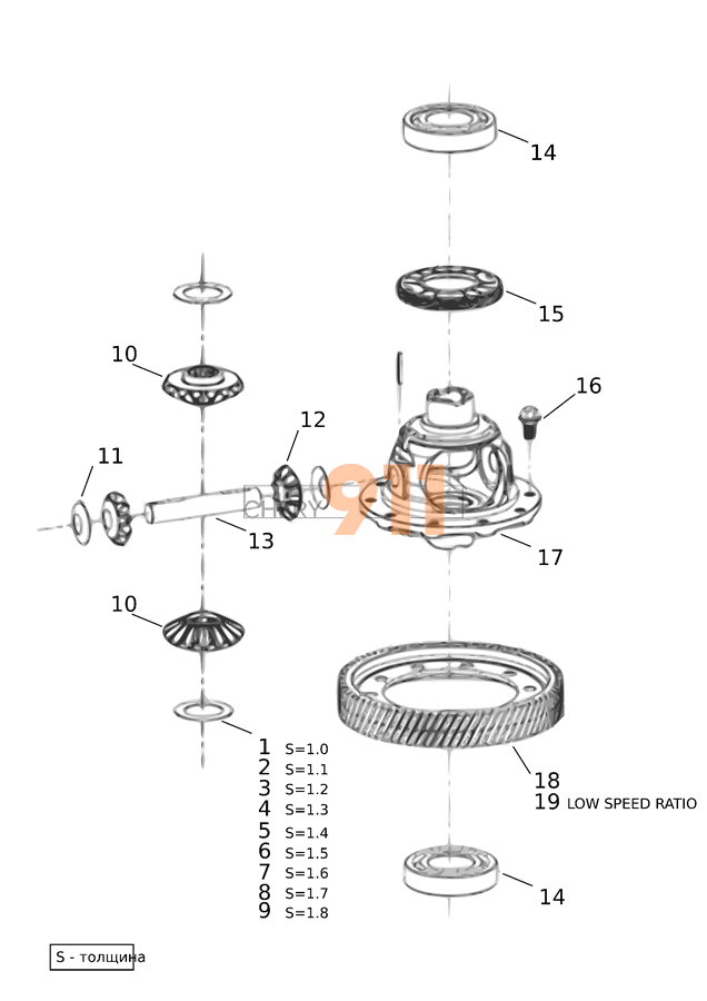 | 5 | 10180237-00 | Прокладання регулювання шестерні ведучого валу1.4 10180237-00 | 1 |