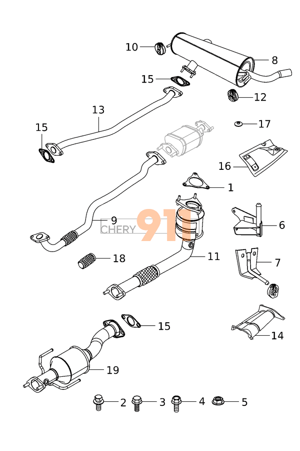 - Схема - Вихлопна система (Двигун 484F (2.0 Acteco)) для Chery Tiggo